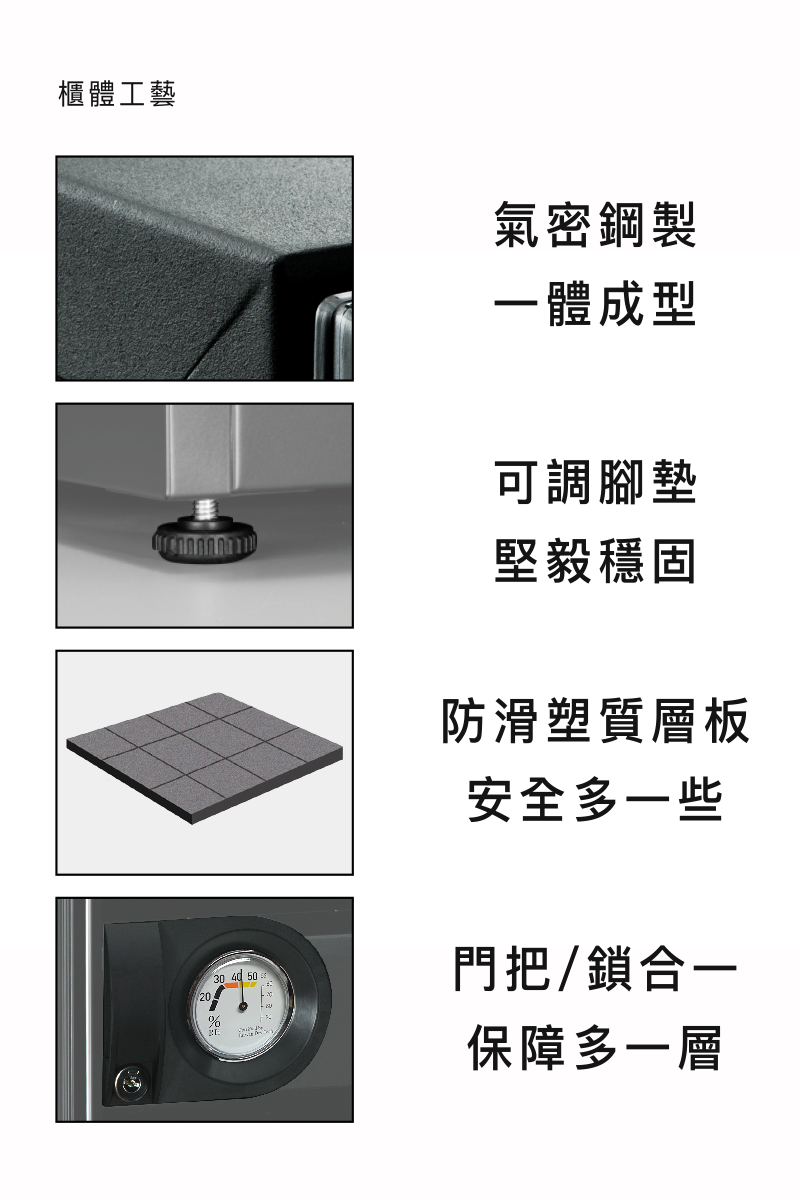 外觀特色(櫃體):『氣密』砂紋烤漆鋼製櫃體